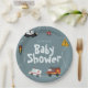 Ces assiettes en papier baby shower mignonnes et modernes pour garçons présentent une illustration bleue du transport de dessins animés, avec une ambulance, une voiture de police et un camion de pompiers. Il y a aussi de la place pour ajouter le nom de la mère.