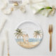 Ajoutez une charmante touche côtière à votre décor de table avec cette plaque en papier personnalisée de Redwood & Vine Design Co. Le design comprend des palmiers doucement peints, une rive sablonneuse, des vagues océaniques douces, et deux planches de surf, jumelées à des détails d'événement personnalisables dans une police serif propre. Idéales pour les douches tropicales, de surf ou de plage, ces assiettes jetables allient confort et style et s'harmonisent parfaitement avec la suite de papeterie côtière correspondante.