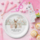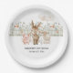 Ces assiettes en papier présentent une scène de ferme pastel avec un cochon, un âne et un agneau réunis par une palissade fleurie donne un ton doux et capricieux pour un baby shower plein de charme rustique et de joie douce. Convient à un bébé garçon ou une fille. Personnalisez avec vos propres informations.
