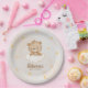 Aquarelle Brown Ours Maigre Nous Pouvons Attendre Rapidement Les Plaques Papier Baby shower. Cette charmante plaque en papier présente une douce aquarelle d'un bébé ours assis au-dessus d'un nuage, entouré d'étoiles scintillantes.