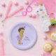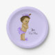 Adorable fille princesse afro-américaine d'ethnie indienne portant des pantalons à rouffle et des pantoufles lapins des assiettes de baby shower princesse. Ces mignonnes plaques de papier baby shower ethnique peuvent être customisées avec du texte dans le style de police et la couleur de votre choix, et vous pouvez choisir votre propre couleur arrière - plan.