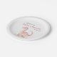 Ces mignonnes plaques en papier baby shower présentent un dinosaure rose en dessous des mots "baby shower" dans l'impression à la main rose. Personnalisez le texte avec le nom de la maman-to-be et la date dans la police de caractères sans serif gris charbon.