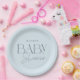 Assiettes En Carton Baby shower moderne élégant à script bleu