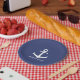 Les assiettes bleues ont une ancre blanche et disent "Ahoy! C'est un garçon !"