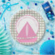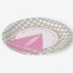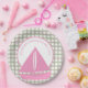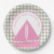 Ces plaques de papier baby shower personnalisées et amusantes sont parfaites pour votre événement en l'honneur d'une mère d'être une petite fille. Ils ont un thème nautique amusant avec un graphisme de voilier rose dressé contre un arrière - plan plaid rose, blanc et vert.