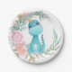 Assiettes En Carton Baby shower Princess Aqua Dinosaur Pink Peony
