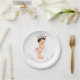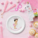 Adorable princesse petite fille portant un pantalon de rouille rose et chaîne de perles princess baby shower assiettes. Ces plaques de papier baby shower princesse mignonnes peuvent être customisées avec du texte dans le style de police et la couleur de votre choix, et vous pouvez choisir votre propre couleur arrière - plan.
