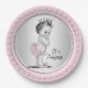 Plaques en papier baby shower Princess avec adorable bébé vintage portant pantalon rose, chaussons et arcs sur un bord de dentelle argent choisir votre propre arrière - plan couleur avec joli c'est un script princess. Ces mignonnes plaques de papier baby shower rose et gris peuvent être customisées avec du texte dans le style de police et la couleur de votre choix.