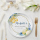 Plaque de papier de Baby shower de taille principale de citron floral bleu