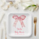 Jolie plaque de baby shower avec un ruban arc coquette rose. Les mots peuvent être changés en fonction de vos propres détails ou exigences