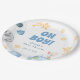 Fournitures de baby shower Party avec "oh boy!", nom de l'événement et date encadrée par des illustrations aquarelles d'étoiles, de planètes et de fusées. Coordonnée avec la collection Out of this World trouvée dans la boutique Adore Paper Co. Zazzle.