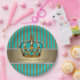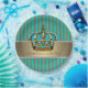 Couronne princière bleu turquoise et or avec de jolies plaques en papier rayures turquoise et or. Vous pouvez personnaliser le texte dans le style de police de votre choix.