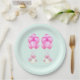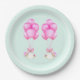 Plaques de baby showers douces avec jumeaux de filles et ballons roses.