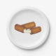 La plaque papier présente une illustration originale d'une paire de bâtonnets de mozzarella frits au fromage. Idéal pour vos malfrats préférés ! Coordination des produits papier disponibles.