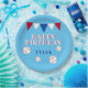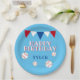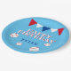 Bleu Bleu Ball Drapeau Anniversaire de enfant Plaque de papier de la fête. Belle assiette de fête d'anniversaire de baseball pour les enfants. Le design a des balles de baseball et des drapeaux de bottes en rouge, blanc et bleu sur un arrière - plan bleu. Personnalisez cette assiette de fête d'anniversaire avec le nom d'un enfant. Idéal pour un garçon qui aime le baseball et d'autres sports.