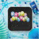 Ballons d'anniversaire et confettis colorés sur un arrière - plan noir. Joyeux texte d'anniversaire est sur les ballons. La couleur Arrière - plan peut être modifiée.