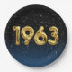 Ballons d'anniversaire en mylar or pour 1963 sur dégradé noir et bleu arrière - plan avec étoiles de nuit.