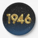 Ballons d'anniversaire en mylar or pour 1946 sur dégradé noir et bleu arrière - plan avec étoiles de nuit.