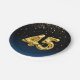 Ballons de fête en mylar or sur dégradé noir et bleu avec des confettis en étoile or pour 45e anniversaire ou fête anniversaire