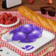 Plaques de papier fête d'anniversaire avec bouquet de ballon violet sur carré, assiettes blanches. Ajoutez l'âge du fils ou de la fille dans un grand nombre dans le coin inférieur. Cette conception fonctionne le mieux sur la forme carré, mais ronde fonctionnera aussi. Retirer l'âge et l'utilisation pour les adultes aussi!