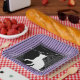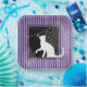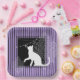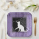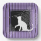 Bande noire violette, chat blanc, damas petit-déjeuner imprimé à la plaque de papier de Tiffany. Consultez la collection complète.