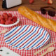 Un motif à rayures rouge, blanc et bleu patriotique.