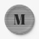 Modern black and white stripes personalized custom monogram initial elegant stylish chic birthday party Paper Plates.