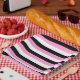Assiettes En Carton Bandes noires, blanches et roses