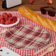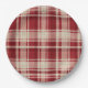 Assiettes En Carton Bandes Plaid Crème Rouge