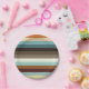Ce design présente des rayures horizontales dans différentes couleurs vintages comme le marron, l'orange, le beige, le bleu, le noir, le gris et le blanc. Il évoque vraiment le style du milieu du 20ème siècle.