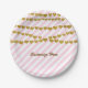 Assiettes En Carton Bandes roses et blanches avec Gold Hearts Party