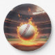 Un baseball volant avec flammes sur un terrain de balle dans un stade arrière - plan pour une fête d'anniversaire sportive.