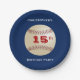 Assiettes En Carton Baseball, Nom, 15e anniversaire