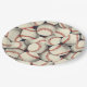 Ensemble de huit plaques de papier de 9" avec une image de balles de baseball avec couture rouge. Voir la bocal à bonbons, tasse à expresso, tasse, flacon, lanceur, théière et dessous de verre. Voir l’ensemble de la collection d’assiettes de fête du Père dans la NOURRITURE/VBE | Section Plats.