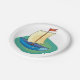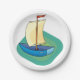 Un petit bateau bleu avec une voile complète. Cette conception semble vraiment efficace sur ces Plaques de papier