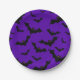 Ces plaques de papier colorées et amusantes sont ornées d'un arrière - plan violet avec des chauves-souris noires volantes. Personnalisez-les facilement en cliquant sur le bouton Customiser pour en faire des assiettes de fête d'Halloween uniques !