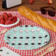 Assiettes En Carton Baubles atomiques Turquoise gris blanc