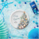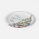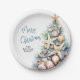 Celebrate the season with this festive and beachy paper plate, perfect for a Merry Christmas celebration. The design features a whimsical Christmas tree made of beach shells, starfish, and coral on the right side, adding a fun coastal vibe to your table setup. The palette includes shades of teal blue and tan for a relaxed seaside feel.