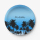 Assiettes En Carton Beach Palm Trees Noir & Bleu Anniversaire