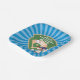 Cette jolie plaque d'anniversaire en papier design comporte un adorable chiot chien portant un casquette de baseball et prêt à jouer à la balle. L'arrière - plan est un terrain de baseball avec un décor de starburst bleu.
