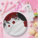 Assiettes En Carton Beau marbre noir & rouge fleurs