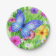 Assiettes En Carton Beau Papillon Bleu avec fleurs Aquarelle