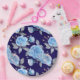 Assiettes En Carton Beaux roses bleus, arrière - plan bleu marine,