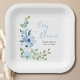 Bébé dans des plaques de papier baby shower bleu fleuri en fleurs. Facile à modifier le texte. Jolie aquarelle fleurie pour baby shower garçon.
