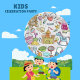 Jeu d'anniversaire de doodé moderne équipement bébé dessin d'enfant main
