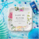 Cette jolie plaque de baby shower aquarelle présente un texte de bébé sucré en fleurs avec un bouquet floral blanc coloré et la mère à être le nom et la date. De jolies fleurs roses et une végétation de prés entourent.