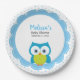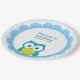 Adorable bébé garçon douches plaques en papier avec un grand hibou souriant. Consultez les produits de baby shower correspondants, y compris les invitations dans notre magasin.