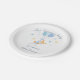Cette assiette de baby shower est décorée dans les tons bleus d'un doux thème de renard mignon. Un bébé renard dort et est porté par des ballons et entouré d'étoiles.