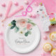 Une assiette de baby showers magnifiquement féminine avec un bouquet de roses d'aquarelle et d'eucalyptus et une verdure à la traîne en rose doux, blanc, vert et bleu-vert. Les appareillages de type tendance comprennent un script manuscrit moderne et un élégant serif. Cet article est un grand choix pour la future mère qui attend une petite fille. Personnalisez le modèle texte facile à utiliser avec le nom de l'invité d'honneur. Disponible en 2 tailles : montré ici dans la taille plus grande de 9 pouces de diamètre, également disponible en 7 pouces de diamètre.