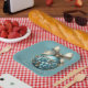 Profitez de vos repas de vacances encore mieux avec ces belles assiettes et serviettes en bleu turquoise et blanc